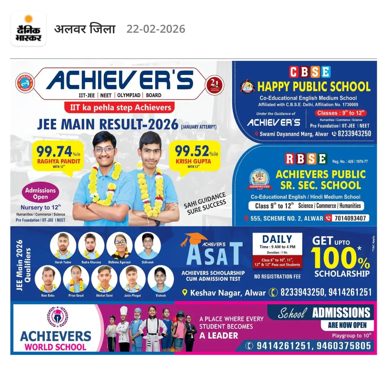 Shriram Vatika, Jaipur Road Alwar, 301001, Rajasthan, Alwar